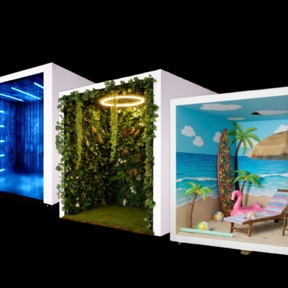 Un décor scénographié à 360°, entièrement thématisé, dans lequel vos invités entrent pour créer des photos spectaculaires