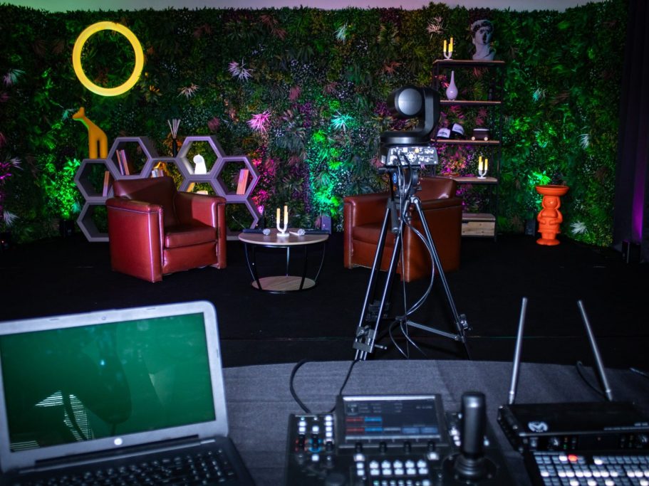 Un studio polyvalent pensé pour vos projets : tournages vidéo, podcasts, émissions, interviews, shootings photo, clips musicaux ou encore enregistrement audio…