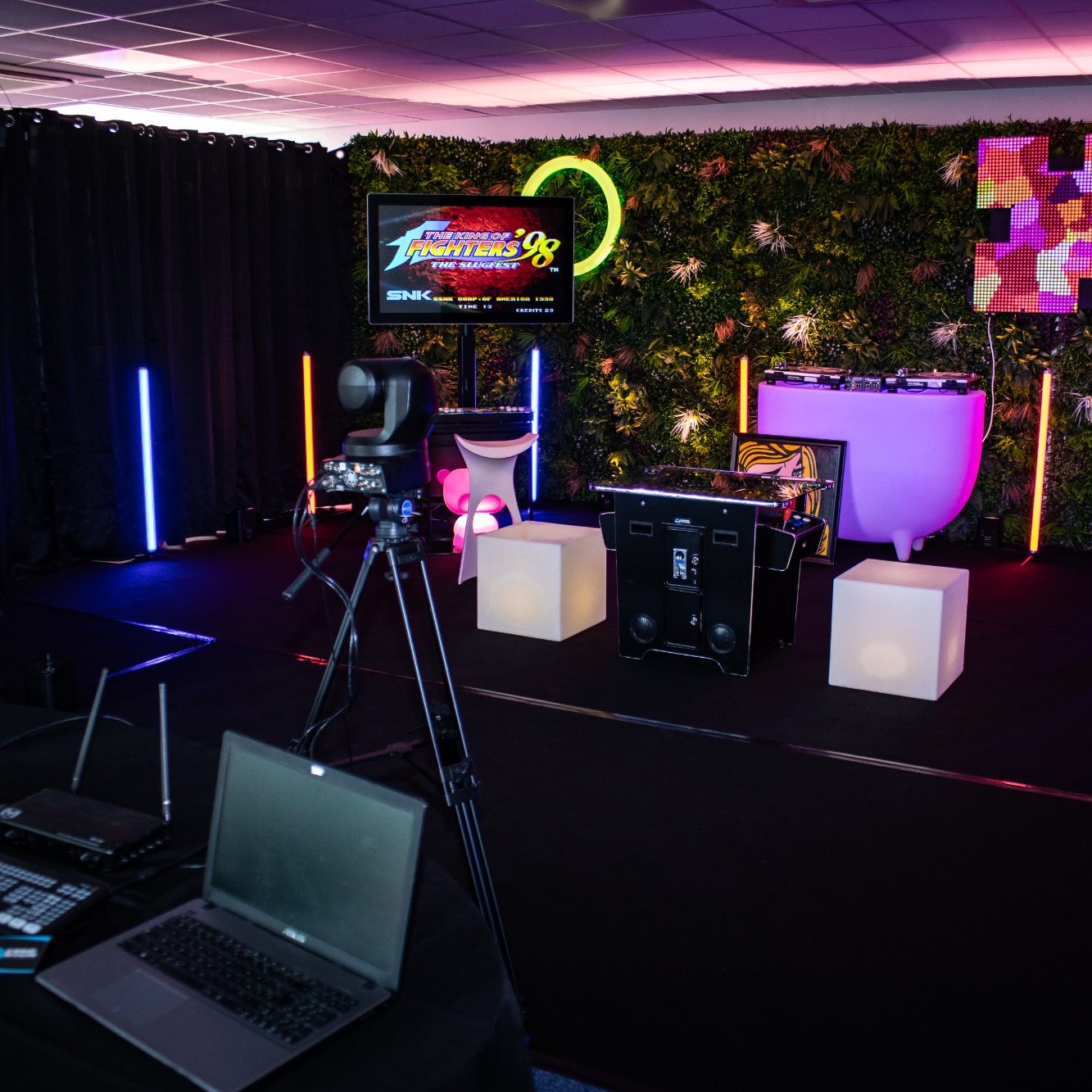 - Fond de scène en mur végétal ou rideau noir